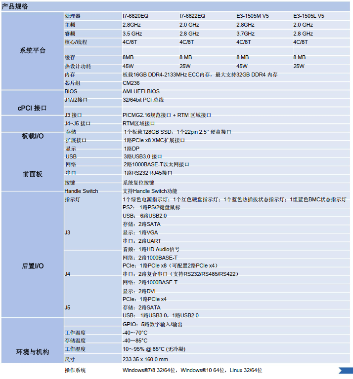 基于Intel®第6代Core™高性能处理器6U Compact PCI刀片式